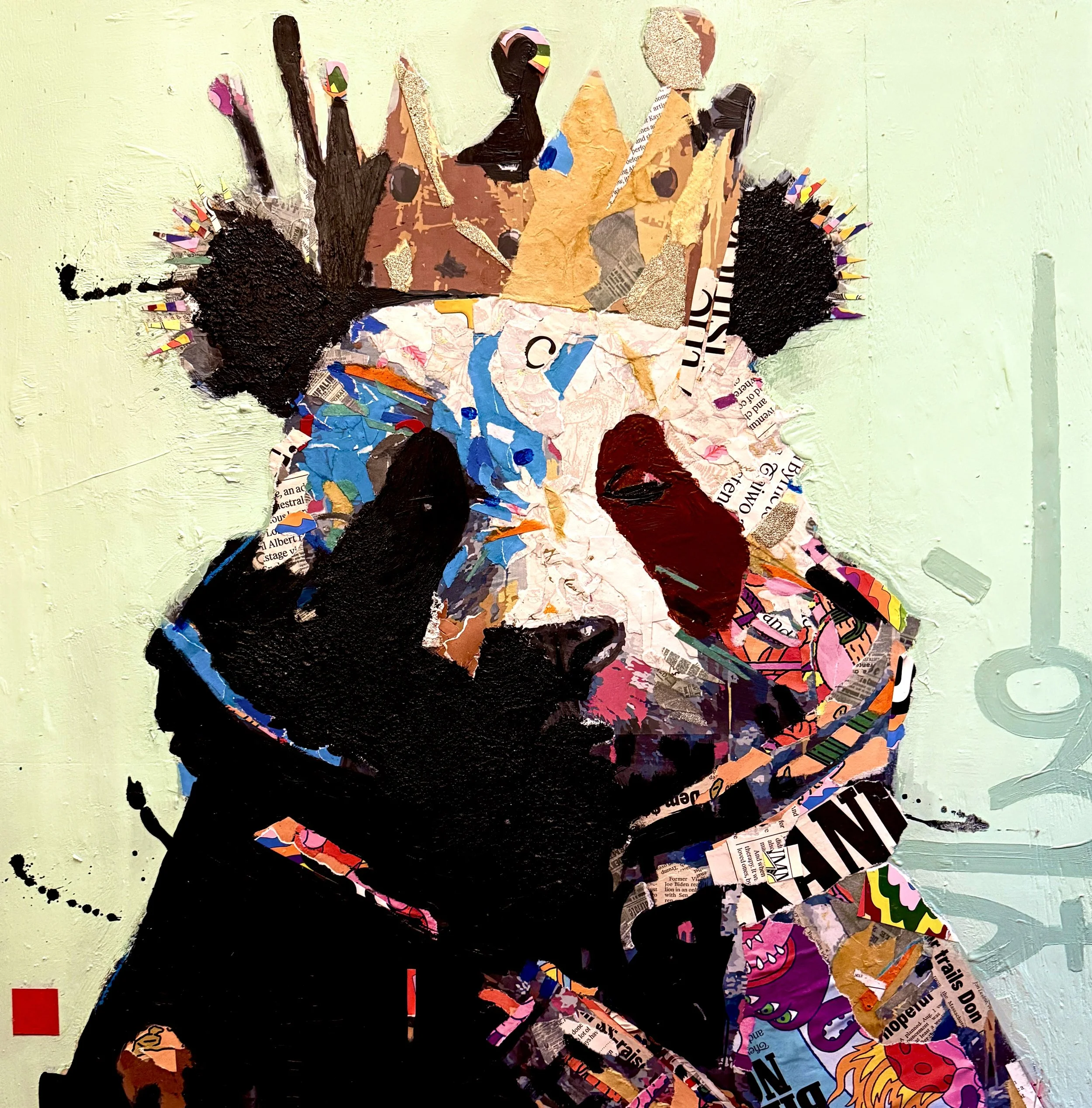 Title: King Panda • Medium: Multi-Media • Materials: Acrylic Paint. On Wood • Size/Dimensions: 24x24 • Year Created: 2025